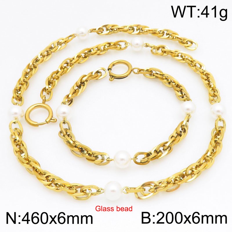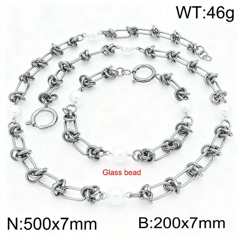Fashion Jewelry Stainless Steel Bracelet Necklace SetKS231327-KFCWholesale Price: