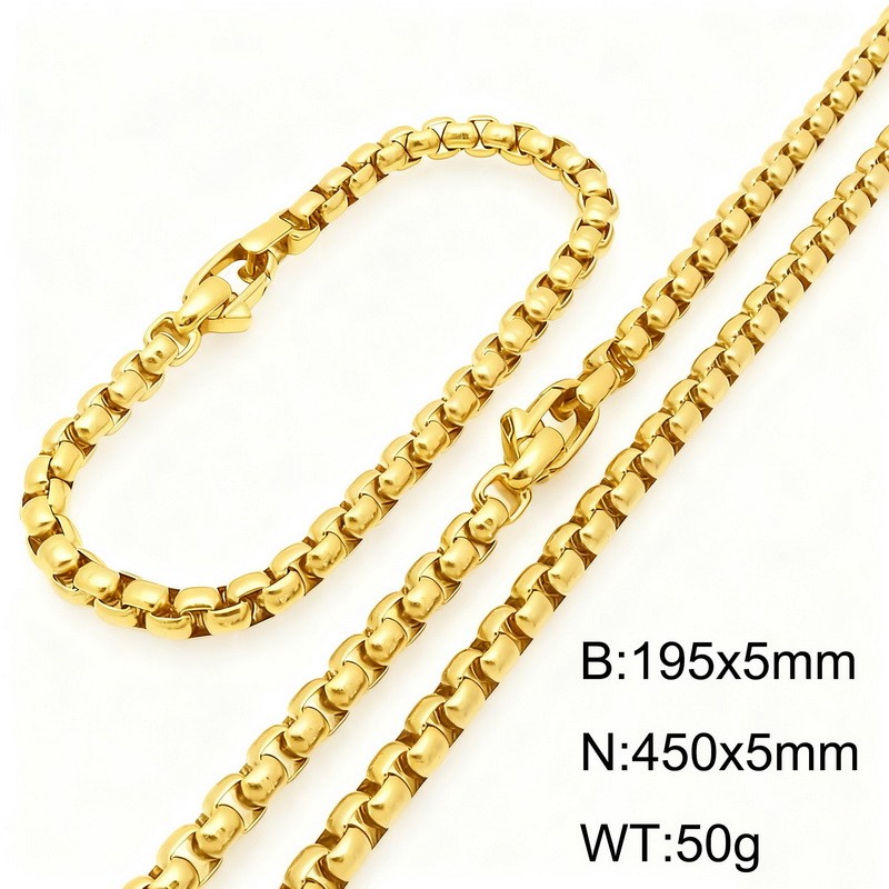 450*11mm necklace stainless steel Cuban chain gold bracelet necklace setKS219395-ZWholesale Price: