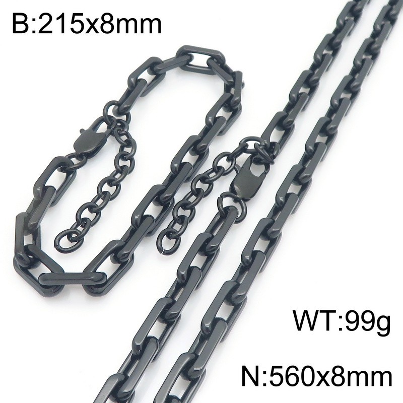 Vintage fashion 7mm Cuban chain jewelry set, plain chain bracelet necklace two-piece setKS223007-ZWholesale Price: U$5.55