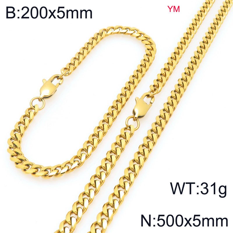 500&210x10MM Gold Color Stainless Steel Cuban Chain Bracelet Necklace Set Fashion Shining Jewelry SetKS218886-ZWholesale Price: