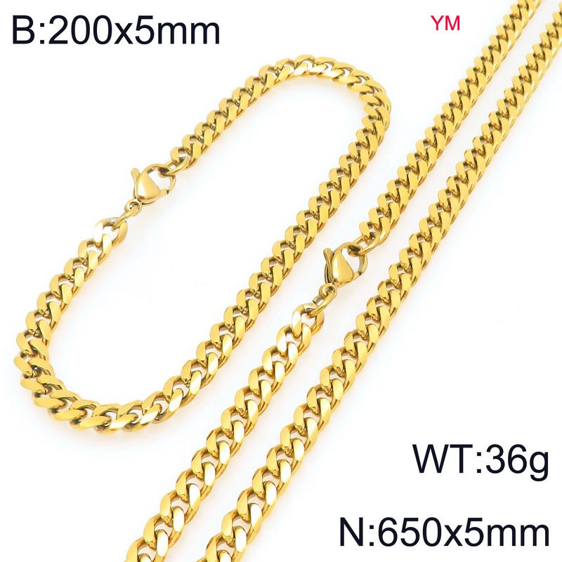 600&210x10MM Gold Colour Stainless Steel Cuban Chain Bracelet Necklace Set Fashion Shining Jewelry SetKS218867-ZWholesale Price: