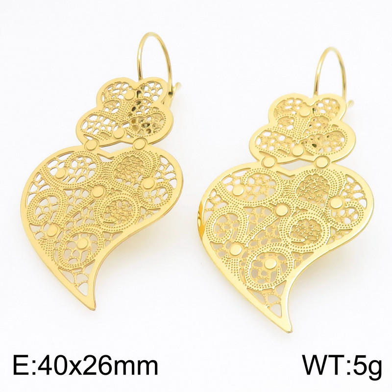 Stainless steel fashionable circular hanging hollow heart-shaped diamond pendant charm gold earringsKE110088-KLXWholesale Price: