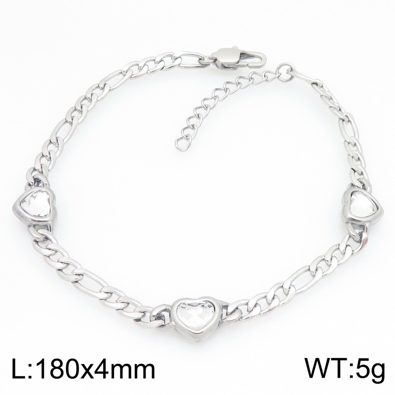 175x4mm Silver Color Lobster Clasp Link Chain Heart Pendant Stainless Steel Charm Bracelet For WomenKB184730-ZWholesale Price: