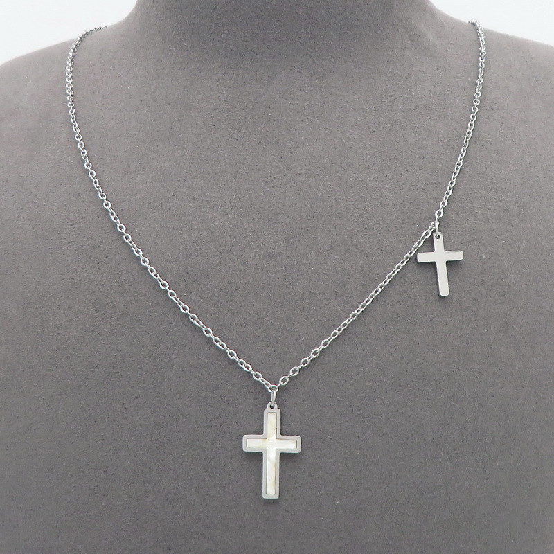 Cross stainless steel short necklace with steel color collarbone chainKN109223-ZWholesale Price: