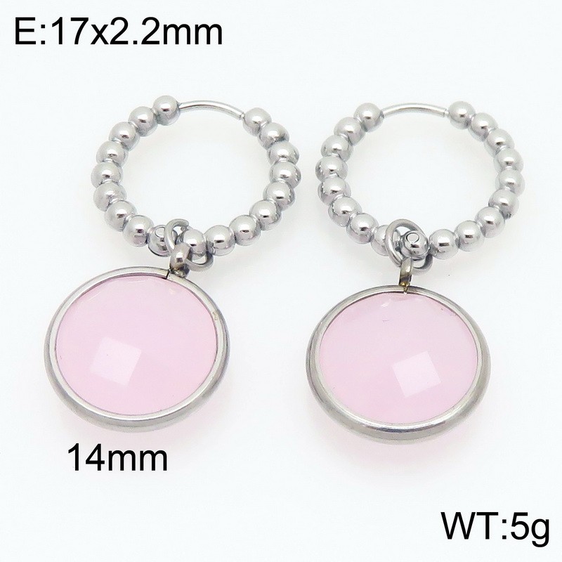 Fashionable stainless steel creative light pink glass diamond circular pendant temperament silver earringsKE121183-ZWholesale Price: U$2.58