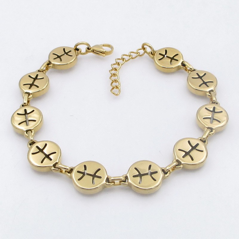 Golden stainless steel bracelet with accessories featuring the twelve zodiac signsKB209534-TKWholesale Price: U$3.1