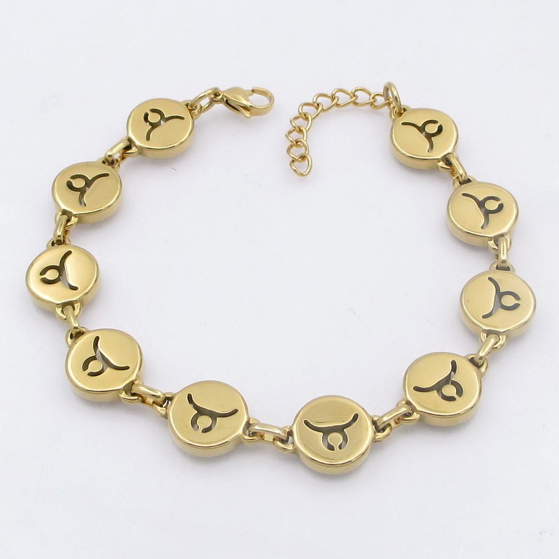 Golden stainless steel bracelet with accessories featuring the twelve zodiac signsKB209530-TKWholesale Price: U$3.1