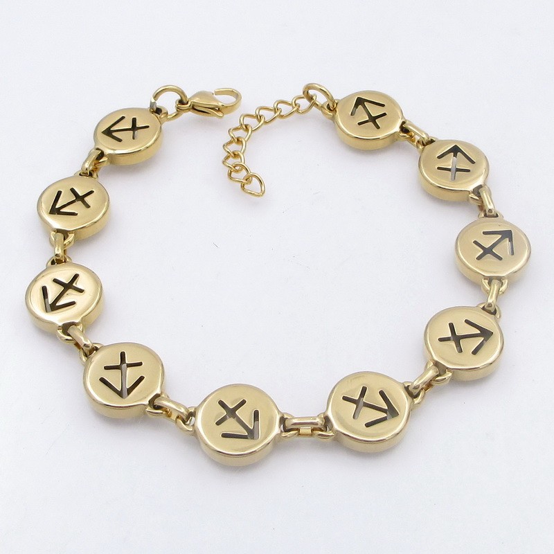 Golden stainless steel bracelet with accessories featuring the twelve zodiac signsKB209531-TKWholesale Price: U$3.1