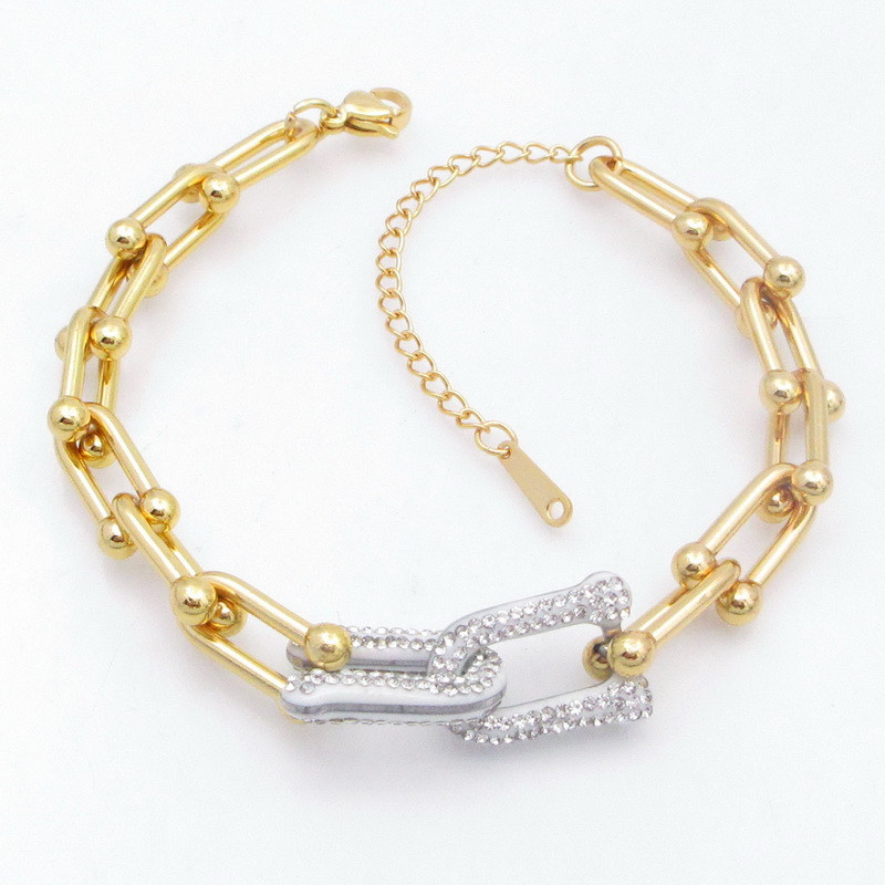 Stainless steel Cuban chain fashion trend OT buckle Gold-plating BraceletKB123168-ZWholesale Price: