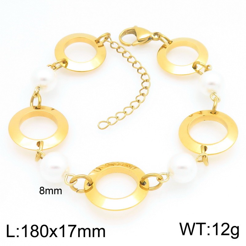 Stainless Steel Link Chain Bracelet With Plastic Pearls Gold ColorKB189244-ZWholesale Price: