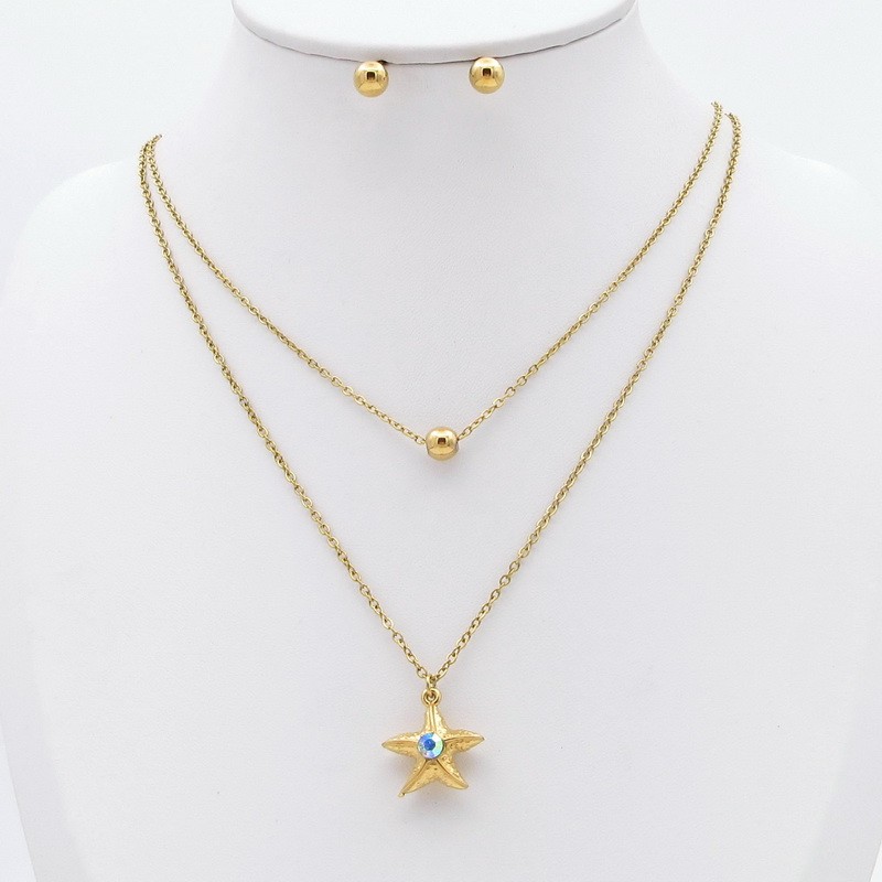 Stainless steel necklace earring two-piece set suitable for women's daily wearKS229871-TJGWholesale Price: