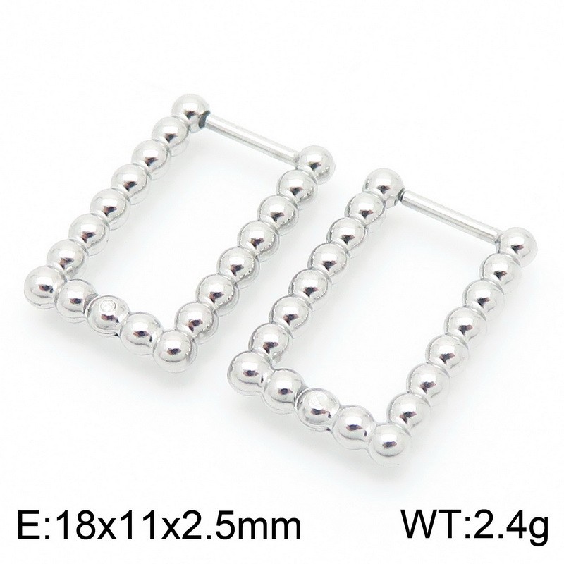 Women Stainless Steel Beaded Rectangle Clip-on EarringsWholesale Price: