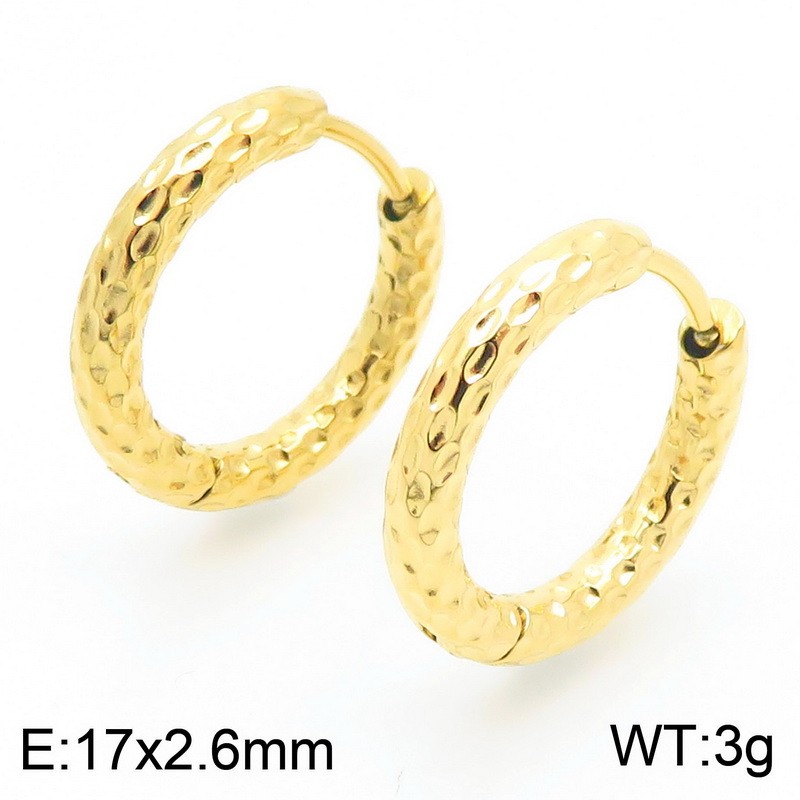 Women 17mm Stainless Steel Net Mark Round Clip-on EarringsWholesale Price: