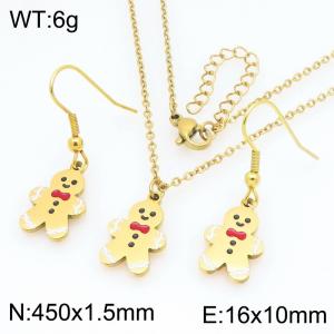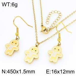 Fashionable and personalized stainless steel cute gingerbread man earrings necklace two-piece setWholesale Price: US$2.97