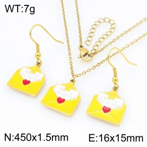 Fashionable and personalized stainless steel heart-shaped envelope earrings necklace two-piece setWholesale Price: US$2.97