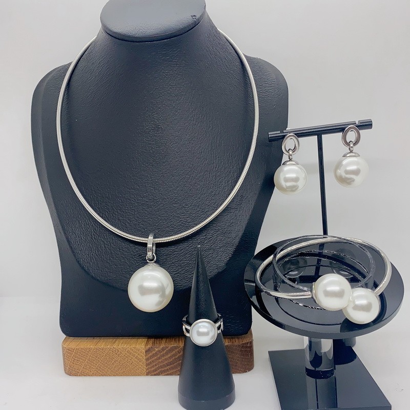 Stainless Steel&Pearls Beaded Bracelet-Necklace SetKS226885-ZWholesale Price: U$7.1
