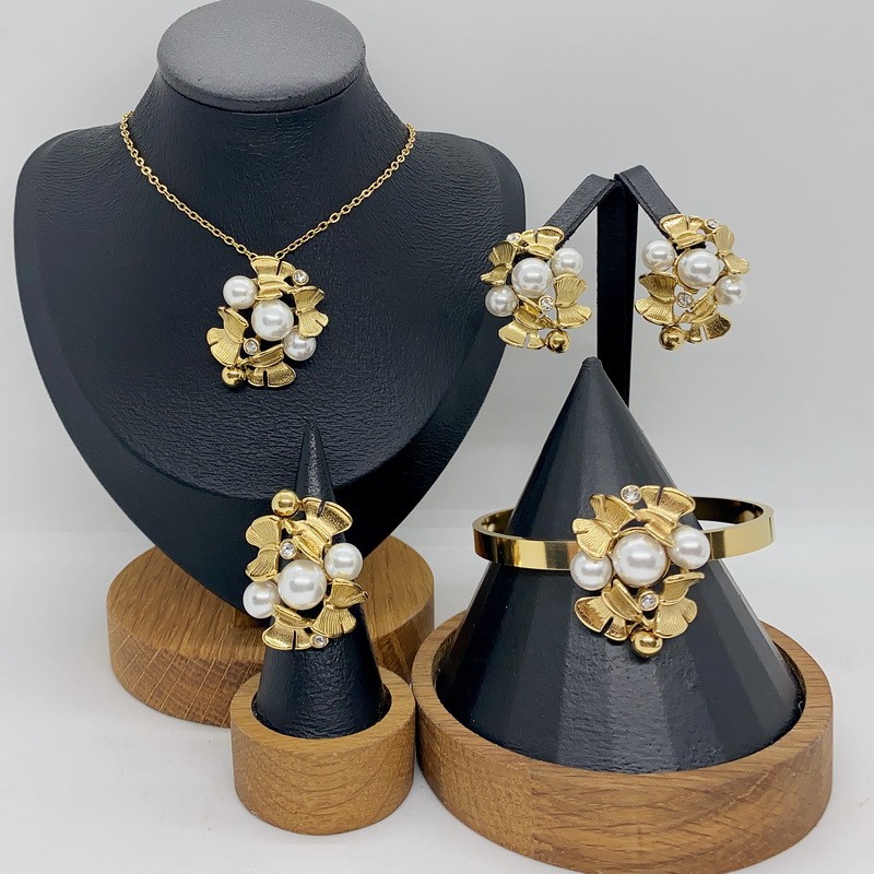 Gold-Plated Stainless Steel&Pearls Beaded Bracelet-Necklace SetKS226886-ZWholesale Price: U$7.88