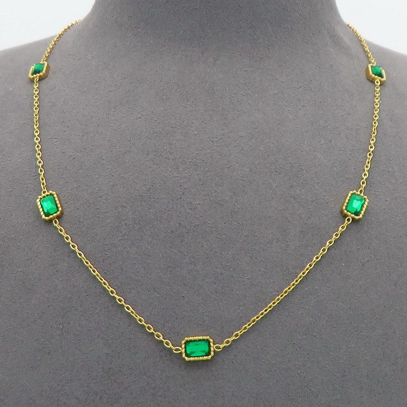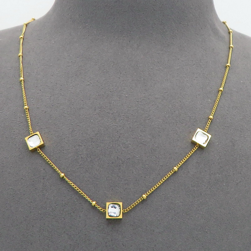 Stainless Steel Stone & Crystal NecklaceKN300989-GCWholesale Price: