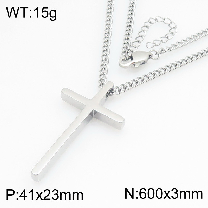 Stainless steel chain paired with cross element NecklacesKN301182-KFCWholesale Price: