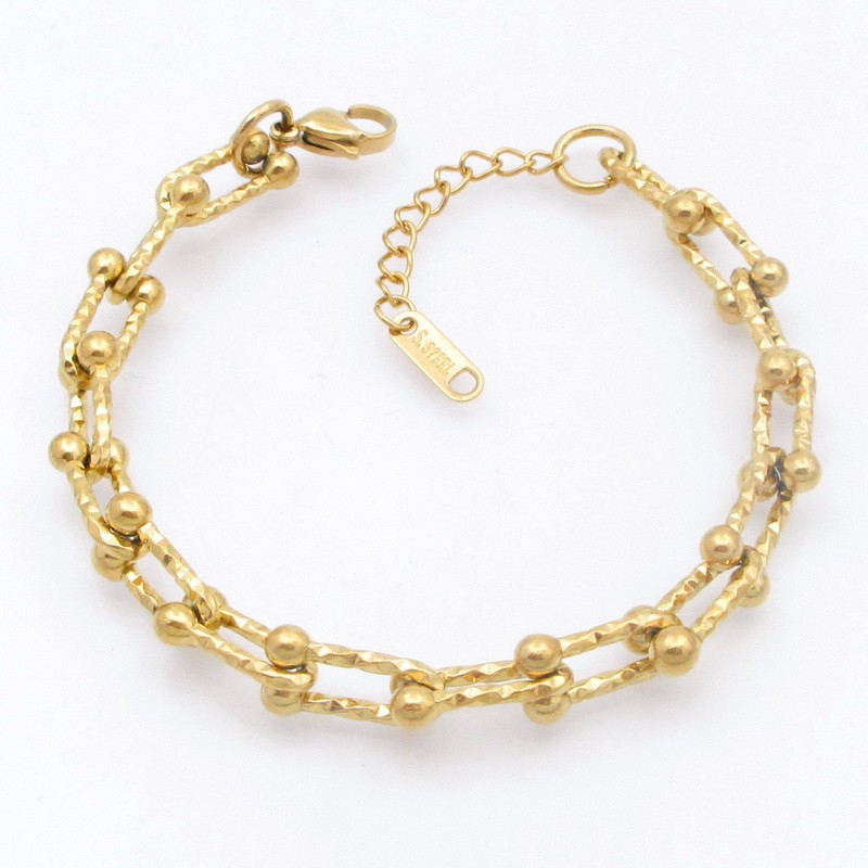 • Fashionable and personalized stainless steel creative pounding pit patterned keel chain rectangular buckle temperament gold bracelet - KB204039-KJX Fashionable and personalized stainless steel creative pounding pit patterned keel chain rectangular buckle temperament gold braceletKB204039-KJXWholesale Price: U$12.14