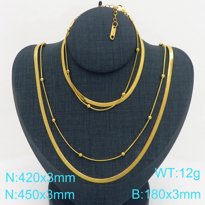 Stainless Steel 600x4.5mm Necklace 200x4.5mm Link Chain Bracelet Sets For Women Men Color GoldKS203647-ZWholesale Price: