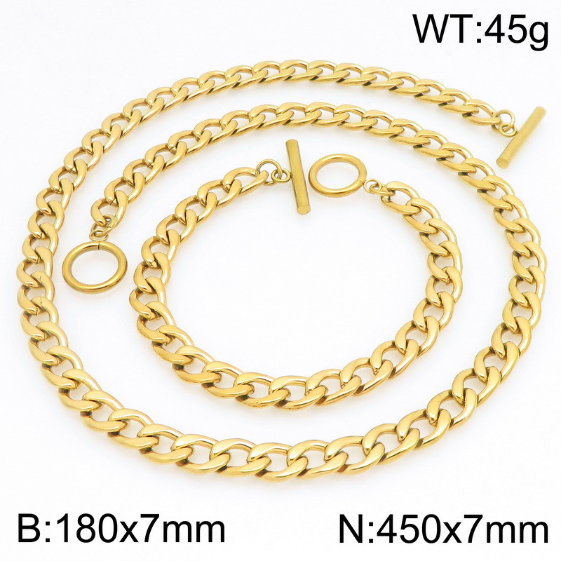 Stainless Steel 700x4.5mm Necklace 200x4.5mm Link Chain Bracelet Sets For Women Men Color GoldKS203649-ZWholesale Price: